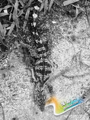 根据网友所发的图片,这条鳄鱼约30厘米长。网络图片