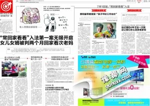 在2013年7月1日的法院判决中,储阿婆女儿必须每两个月至少到母亲居住处看望、问候一次;端午节、重阳节、中秋节、国庆节、元旦,应当至少安排两个节日期间内予以看望;除夕夜至元宵节期间,应当至少予以看望一次……当时,此案正是修订后的《中华人民共和国老年人权益保障法》正式施行后,全国首例对“常回家看看”诉请的判决,因此也被称为“常回家看看”全国第一案(现代快报在2013年7月2日、2014年2月16日有详细报道)。