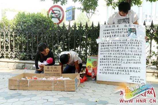 在现场,陈志豪的妻子怀里抱着两个月大的婴儿,看着十分心酸。映象网讯(记者 王涛 文/图)9月20日,中秋佳节临近,在河南省会郑州街头现感人一幕,两位年轻的兄弟跪在路边为救患重病父亲,售卖爱心人士捐赠的月饼,引得路人围观捐助。