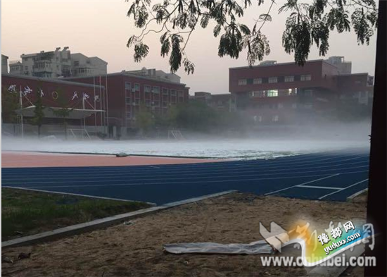 家长反映的白色雾气究竟是什么?张老师解释说,因为学校操场所用的草皮是人造草,为了让草坪更加平整,有弹性 ,所以需要在草皮上铺设石英砂,大家所看到的白色雾气,就是在铺设时,刮风带起的石英砂细尘,现在已经铺设完毕,所谓的白色雾气就不会再有了。张老师进一步解释,现在还存在的异味就是废旧轮胎颗粒散发的味道,这些橡胶颗粒可以提供更好的弹性和抗冲击力,减少运动时所产生的损伤,是行业内铺设操场的通用做法。张老师说,草皮、跑道的原料毕竟是塑料制品,在太阳下照射下难免有味道,但对人体没有危害,家长们可以放心。