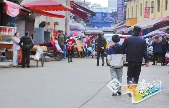 派出所协警和男孩边走边聊 记者 刘筱庆 摄