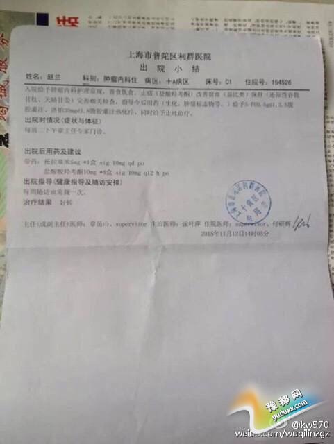 目前,赵兰同学从上海第二军区大学附属肿瘤医院进行治疗,忍受病痛的折磨,命垂一线,因为家庭经济困难,交不上天文数字的医药费,只好出院回到遵义爱民医院医治,急需大家的帮助!