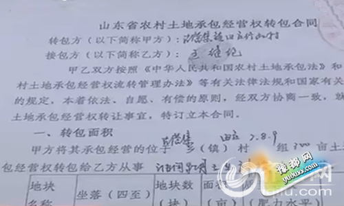 记者从合同中看到,土地转包年限是五年,转包费每年农历8月底之前要付清,而农场的地被旋耕的日子是农历9月初二,也就晚交了一天。(视频截图)齐鲁网11月22日讯 最近,菏泽市曹县古营集镇田庄村民打来电话说,自己家庭农场的农产品遭受村民的破坏,哄抢而光。