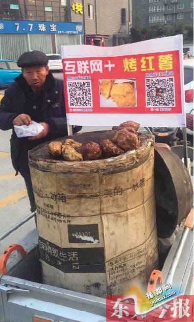 照片中,大爷的烤地瓜摊上挂着的广告牌上“互联网+烤红薯”的文字特别醒目,文字下面还有二维码与地瓜的照片。 据网友描述:到大爷的地瓜摊买地瓜扫二维码可少掏五毛钱,进入“最温暖的烤红薯”微信群,以后就可以在线预订烤地瓜,还可以挑选大小和成色。大爷已经积累了154个群友,大爷说,加到第300位群友的时候,那人可以免费吃红薯。