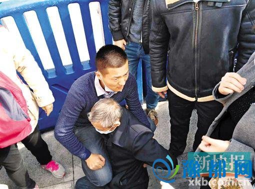 12月7日,现场一位上了年纪的男性业主,被水枪喷到后感到不适,瘫倒在地。