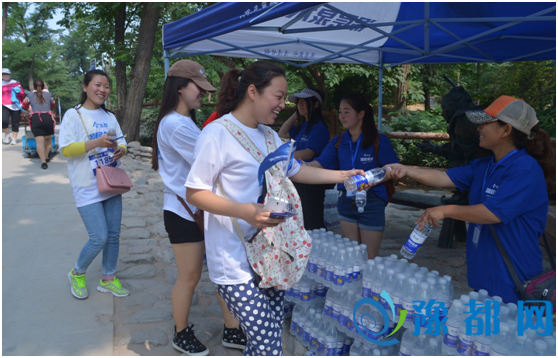 贴心的派水员为沿途的参赛者递上深层泉水补充体力
