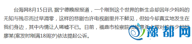 《女大学生未婚生男婴将其遗弃 一家三口获刑》由河南新闻网-豫都网提供,转载请注明出处:http://news.yuduxx.com/shwx/621784.html,谢谢合作!