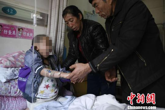 中新网太原12月8日电 (范丽芳)小帅背靠垒起的被褥,大口喘着气,一阵阵剧烈咳嗽让他脸色发白,一只手插着针头输液,另一只手不时抚摸鼓胀的肚子。20多天前,这个来自山西临县车赶乡钟底村的6岁男童,被当地医院怀疑患有“很难治”且“治疗费很高”的病;小帅妈妈得知儿子可能是“恶性肿瘤”后精神崩溃,住进精神病院治疗……这个风雨飘摇的家庭只能寄希望于