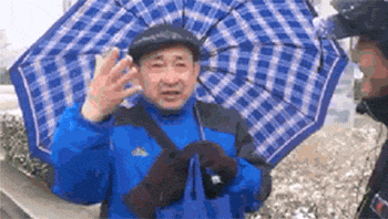 大爷一边做手势,一边起了个播音范儿:虽然手是冷的,但我的心是暖的!