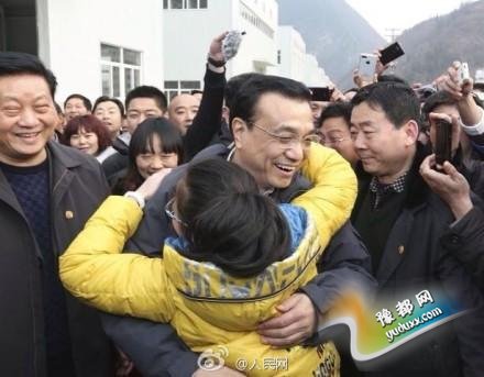 “总理被小女孩‘求拥抱’”的照片随即在网络上广为传播。一年后,江欣桐回忆说,自己之所以提出这样的要求,是因为站在面前的李克强