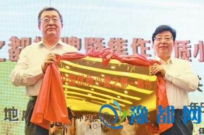 中国粮食行业协会副会长郄建伟(左)向焦作市委副书记、市长徐衣显(右)授牌