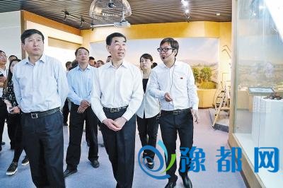 河南省副省长王铁(右二)、焦作市市委书记王小平(左一)在小麦博物馆参观。