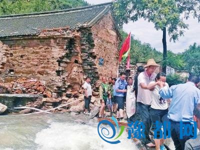 林州市任村镇后峪沟遭遇洪灾,紧急时刻,任村镇组织党员干部成立救灾突击队营救村民。记者高志强张波摄影