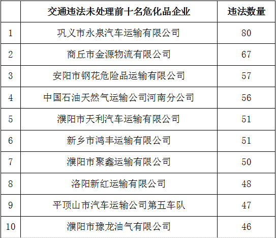《河南交警公布十大交通违法企业排行榜》由河南新闻网-豫都网提供,转载请注明出处:http://news.yuduxx.com/szrd/690347.html,谢谢合作!
