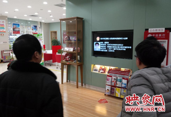 豫都网讯(记者 王红伟 通讯员 禹亚光 陈德亮)12月22日,中信银行某支行电子信息屏上出现了一组“老赖”名单,引来许多办事群众驻足围观。红旗区人民法院执行局利用电子信息屏晒出“老赖”,这已是今年的第十次了,通过这种公开曝光的创新措施,努力营造“拒不履行法院判决,就是违法犯罪行为”的舆论氛围,让失信老赖们在更广范围内曝光,在心理上感受更强的法律威慑,也让更多社会群众知晓、支持、配合法院的强制执行工作,共同构建公平、正义的和谐社会。